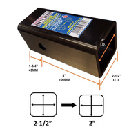 Mister Hitches designed this hitch reducing sleeve to convert a 2 1/2" Inch (63.5mm) Square Tow Receiver in to a 2" Inch (50.8mm) Square Tow Receiver. It can also be welded on to a towbar where a 50mm x 50mm square receiver is needed.